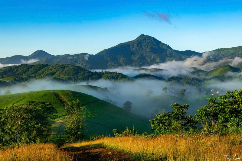 - Không gian mây, sương, ánh sáng: Vào sáng sớm, sương mù và mây nhẹ bao phủ các triền đồi, kết hợp với ánh nắng đầu ngày tạo nên khung cảnh huyền ảo, rất lý tưởng để chụp ảnh và săn bình minh. Đến chiều muộn, ánh hoàng hôn lại nhuộm vàng những đồi chè, mang vẻ đẹp dịu dàng và lãng mạn.