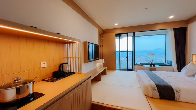 Lynn Times Thanh Thủy đã và đang mang đến hệ thống lưu trú đẳng cấp quốc tế, nơi mỗi căn phòng đều được chăm chút tỉ mỉ theo phong cách Nhật Bản tối giản nhưng tinh tế cho du khách. Khách sạn ở resort sở hữu hơn 2.000 phòng nghỉ sang trọng, tất cả đều được trang bị bồn tắm khoáng nóng ngay trong phòng – một điểm cộng hiếm có, giúp du khách có thể thư giãn với nguồn khoáng quý giá bất cứ lúc nào. Bên cạnh đó, không gian phòng cũng rất thoáng rộng, nội thất gỗ ấm cúng, ban công mở hướng về núi Tản – sông Đà mang đến cảm giác an yên đúng chuẩn resort Nhật giữa lòng miền Bắc.