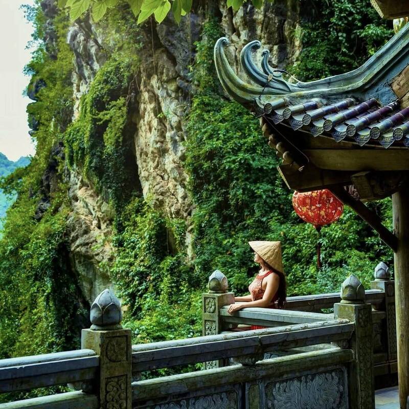 Trải nghiệm tại khu du lịch Hang Múa sẽ bắt đầu bằng hành trình chinh phục gần 500 bậc đá trắng uốn lượn quanh sườn núi, được ví như “Vạn Lý Trường Thành thu nhỏ” giữa lòng Ninh Bình. Con đường đá cổ kính, xen lẫn những hàng cây xanh và tiếng chim hót như vậy sẽ mang lại cảm giác vừa thư giãn vừa thử thách. Càng lên cao, khung cảnh càng mở rộng, khiến du khách cảm nhận rõ sự hùng vĩ của non nước Tràng An. Dù quãng đường leo có phần dốc và mỏi chân nhưng khi đặt chân lên đỉnh núi Hang Múa, mọi nỗ lực đều được đền đáp xứng đáng. Tại đây, bạn có thể check-in bên tượng rồng uốn lượn trên đỉnh, tượng Quan Âm ngự tọa và cả những bậc thang đá cổ mang dấu ấn thời gian – những điểm sống ảo “huyền thoại” không thể bỏ qua.
