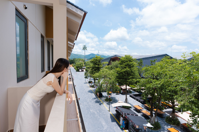 Bên cạnh khu khách sạn, khu shoptel liền kề thương mại cũng là lựa chọn được nhiều gia đình và nhóm bạn yêu thích. Các căn hộ ở đây rộng rãi với phòng khách lớn và ba phòng ngủ, sức chứa lên đến 6 người lớn và 3 trẻ nhỏ, rất phù hợp cho chuyến nghỉ dưỡng đông người. Mỗi căn shoptel còn có bể khoáng nóng tự nhiên ở tầng thượng – điểm cộng “chất chơi” cho những ai muốn trải nghiệm onsen riêng tư tại nhà. Bên dưới là phố đi bộ Hokkaido & Sakura sôi động với quán ăn, cửa hàng, khu vui chơi và giải trí cũng giúp mang lại cảm giác gần gũi và nhộn nhịp, biến kỳ nghỉ tại Lynn Times không chỉ là thư giãn mà còn rất đáng nhớ nhờ vô số hoạt động thú vị.
