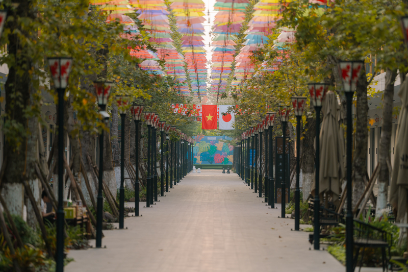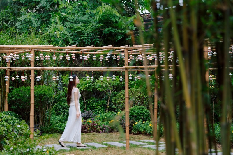 Bên cạnh đó, khu nghỉ dưỡng gây ấn tượng với không gian thiết kế đậm chất Nhật: vườn thiền Zen thanh tịnh, hồ cá Koi, ngôi chùa phong cách Phật giáo Nhật cùng nhiều tiểu cảnh Origami độc đáo. Mọi chi tiết như vậy đều được chăm chút nhằm mang đến cảm giác an yên, tối giản và gần gũi thiên nhiên dành cho mọi du khách.