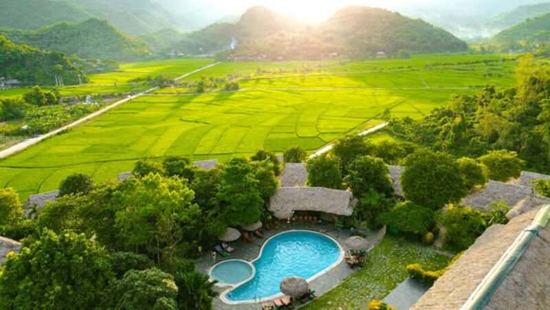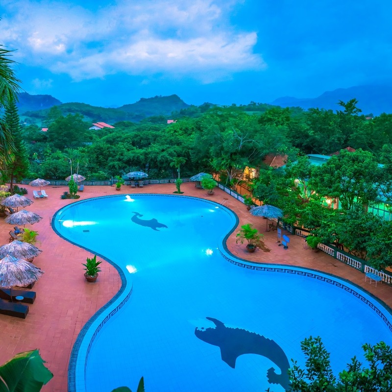 Tại đây, du khách có thể thư giãn trong hồ bơi view núi, tham gia lớp học nấu ăn hay đạp xe khám phá bản làng. Nhà hàng trong resort cũng phục vụ rất nhiều món đặc sản dân tộc Thái, vừa đậm hương vị vừa gắn liền với văn hóa bản địa. Với cảnh quan thơ mộng và triết lý xanh, Mai Châu Ecolodge chắc chắn sẽ mang đến một kỳ nghỉ bình yên, gần gũi thiên nhiên hiếm có đó nha.