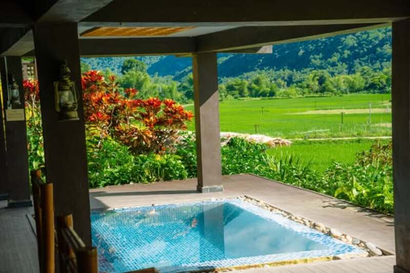 Điểm nổi bật tại đây chính là khu tắm khoáng nóng và bồn tắm thảo dược, giúp du khách thư giãn và cải thiện sức khỏe. Ngoài ra, resort còn tổ chức nhiều hoạt động thú vị như hái rau, trồng cây, đạp xe hay tham quan bản làng để bạn có thể trải nghiệm đời sống Tây Bắc, hứa hẹn sẽ là điểm nghỉ dưỡng thân thiện và đầy hấp dẫn nhé.
